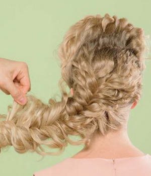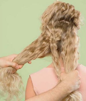 - начиная от макушки необходимо перекидывать волосы в шахматном порядке.