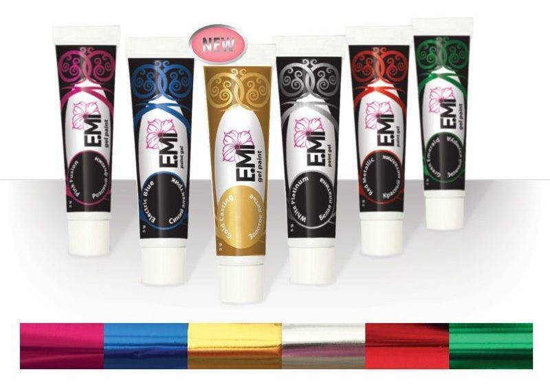 Производитель Emi представил свою продукцию несколько в другом цвете. Для выпуска густой массы он создал маленькие тюбики, из которых средства выдавливаются. Бренд позаботился даже о новичках и выпустил продукцию в 5 граммовых тюбиках, которая предназначена для начинающих. Набор содержит около 10 цветов.
