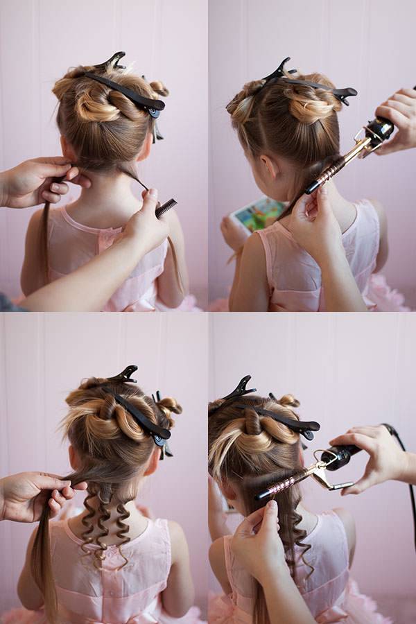 - Не берите в качестве примера взрослые укладки – отдайте предпочтение плетениям, хвостикам, жгутикам, которые не стягивают пряди слишком туго.