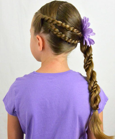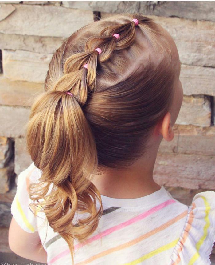 Вариант на все те случаи, когда хочется чего-то необычного, а времени на подготовку осталось мало. Такие детские прически для девочек (фото дает нам приблизительно оценить фронт работ) займут в пределах получаса.