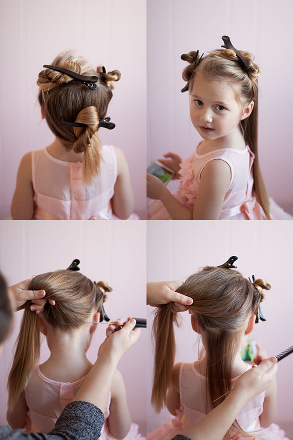 - Не стоит перегружать голову ребенка обилием заколок и шпилек. Стремление создать роскошную прическу понятно, но портить кожу и волосы в раннем возрасте не стоит.