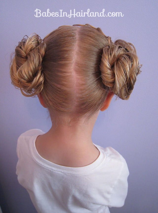 До сложного – плетения жгутов или кос (двух кос) и укладкой их в пышный кок или в два забавных кока-улитки.