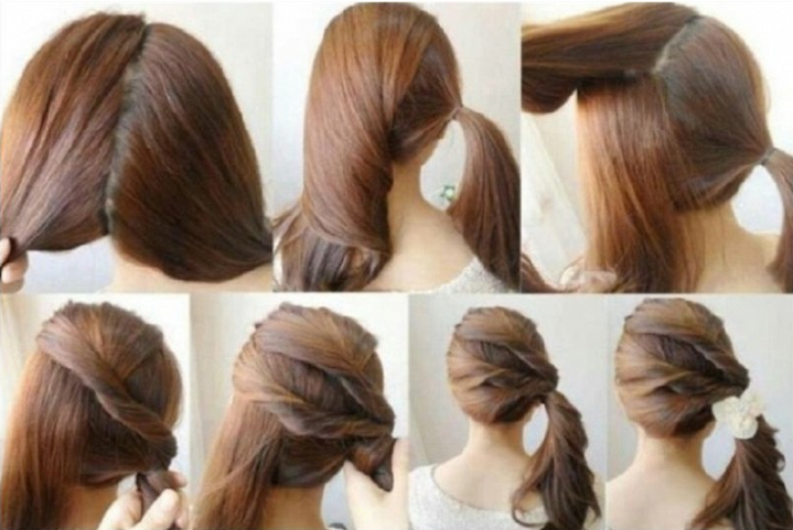 Для их оформления используются разные способы завивки или выпрямления локонов. Хвосты украшаются в месте крепления прядей заколками, косами или различного плана украшениями.