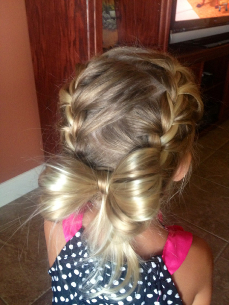 - если хотите украсить прическу бантом, то выбирайте небольшой, аккуратный бантик, а не огромный и пышный. Маленький бантик в тон к платью будет прекрасным и оригинальным дополнением.