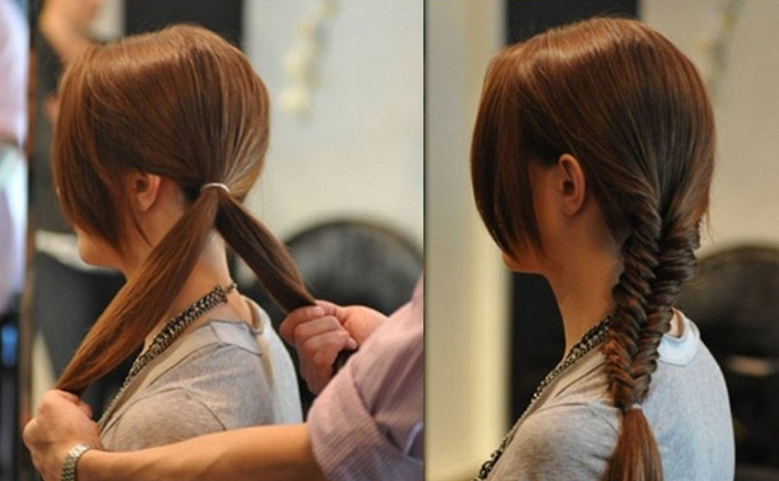 Несложная женская новогодняя прическа «Рыбий хвост» на длинные волосы (с пошаговыми фото)