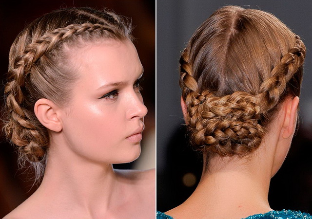 Укладки длинных волос с использованием разнообразных кос в этом сезоне отодвинули назад сложные и многоярусные плетения. В моде простота и изысканность. Вы смело можете соорудить на волосах одну объёмную косу и расположить её на боку или украсить голову плетениями с вытянутыми звеньями по бокам. Актуальны, как и прежде, варианты французской косы, коса-водопад, дракончик и колосок. Очень шикарно смотрятся с вечерними нарядами греческие косы с лентами, цветами и красивыми заколками. Материалом для создания подобной причёски могут стать как прямые и гладкие волосы, так и вьющиеся или слегка начёсанные пряди.