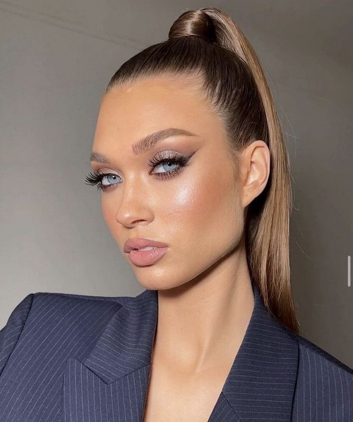 К ультрамодному брючному костюму подойдет асимметричная прическа на один бок или укладка с эффектом мокрых волос. Атласный блеск шелкового платья на бретельках дополнят глянцевые локоны или гладкий высокий пучок.