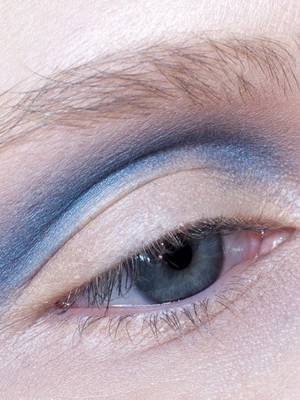 Можно выполнить насыщенный смоки-айс темными матовыми оттенками, а затем добавить на подвижное веко синий шиммер.