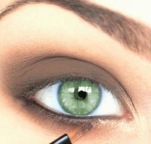 Макияж для серо зеленых глаз. Наиболее сложный для макияжа глаз зеленые глаза с серым оттенком. Для обладательниц серо зеленых глаз не следует использовать тени глубоких темных оттенков. Чтобы подчеркнуть красоту таких глаз наносите светлые тени на верхнюю часть века, а более темный оттенок лучше нанести на подвижную область века. Определившись со своим оттенком зеленых глаз для макияжа, можете подобрать цветовую гамму декоративной косметики.