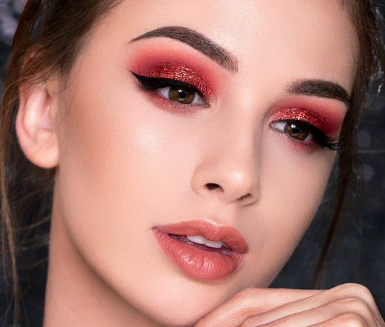 Для создания привлекательного и чарующего облика лучше использовать нежно-красные пигменты, ненавязчиво добавляя оранжевые подоттенки.