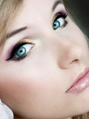 Золотистые тени редко идут обладательницам голубых глаз, ведь чаще всего это представительницы холодного летнего цветотипа.