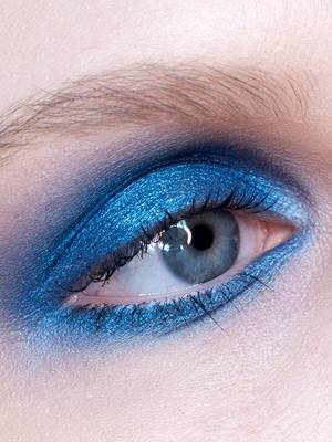 Чтобы внешность казалась ярче, используйте металлизированные жидкие тени глубоких синих оттенков: