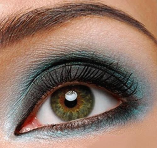 Макияж для зеленых глаз цвета морской волны. Обладательницам данного оттенка зеленых глаз подойдут тени для век светлых и средних оттенков с голубоватым полутоном. Не пользуйтесь тенями темных оттенков, которые можно использовать для подводки глаз.