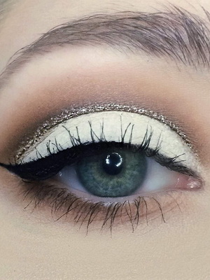 При этом тени могут быть матовыми или перламутровыми, в зависимости от повода. Мейкап можно дополнять стрелками чёрного, коричневого, серебристого и золотистого оттенка. Для дневного макияжа лучше избегать использования яркой подводки.
