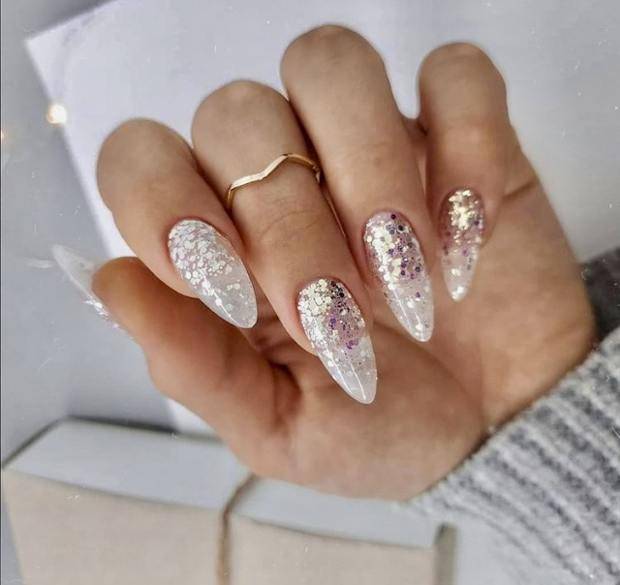 Невозможно представить праздник без искрящегося маникюра. Сияющий гель-лак, наполненный блестками, словно огоньками, подарит не только отличное настроение, но и идеальное покрытие ногтям.