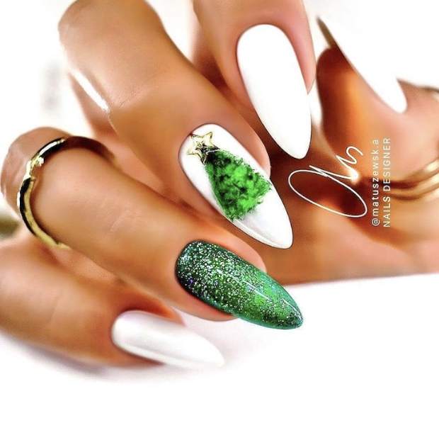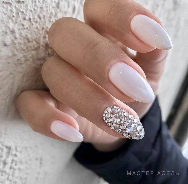Белый лак подчеркнет ноготки любой длины. Это практически беспроигрышный вариант. Плюс если к нему добавить блесток на несколько пальчиков, или нанести рисунок, будет просто шикарный вариант праздничного дизайна.
