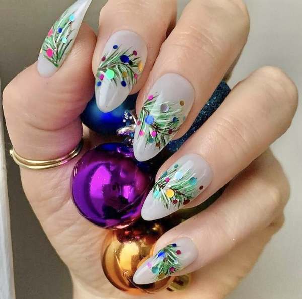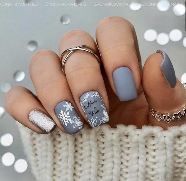 В этом праздничном Новогоднем сезоне, минималистичный дизайн прекрасно впишется в любого цвета Новогодний наряд. Очень стильно и легко будут смотреться пастельные цвета с небольшими акцентами в виде рисунка снежинки, нескольких аккуратных страз или каплей блесток.