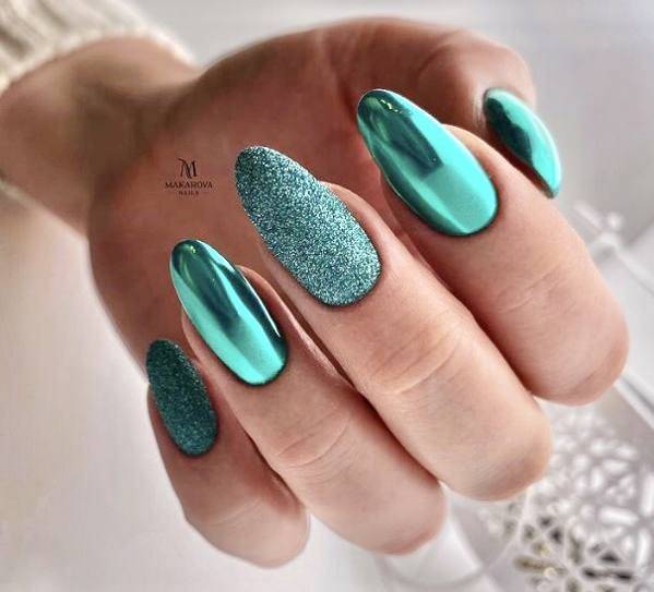 Красивый зеркальный блеск праздничных шаров вдохновляет и навевает настроение грандиозного праздника. А вот роскошная блестящая или жемчужная гладь на ногтях при помощи декора “втирка” очаровывает и подчеркивает хороший вкус.