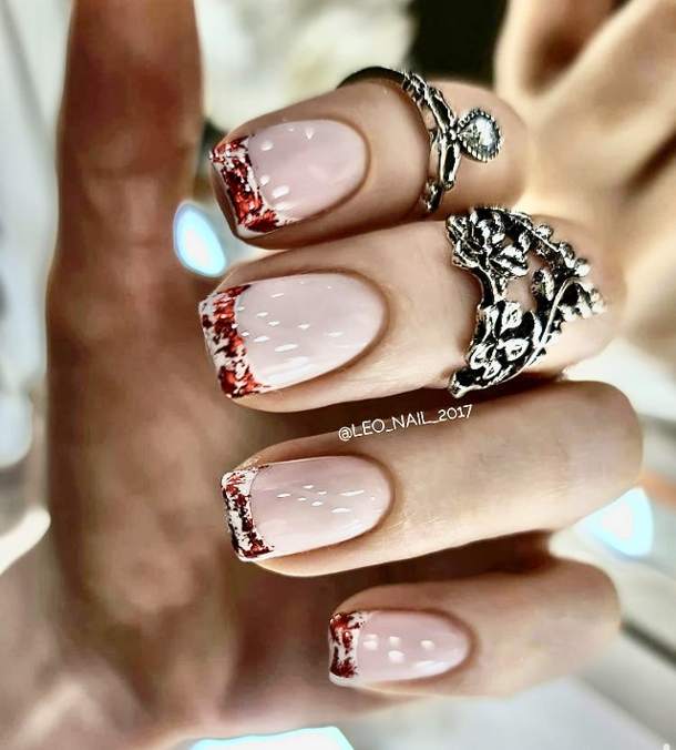 В этом Новогоднем сезоне французский маникюр тоже должен сиять и блестеть. Поэтому, френч нужно украшать фольгой, блестками и стразами.