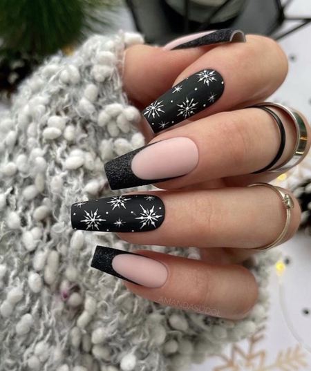 Традиционно черный, темно-синий, марсала, фиолетовый в сочетании с теплыми пастельными оттенками отлично впишутся в оригинальные идеи маникюра зима.
