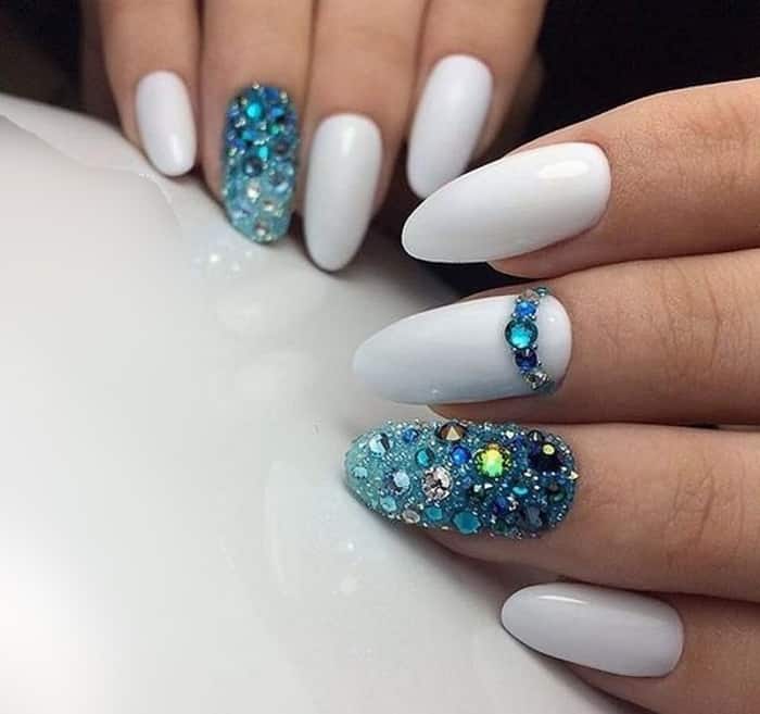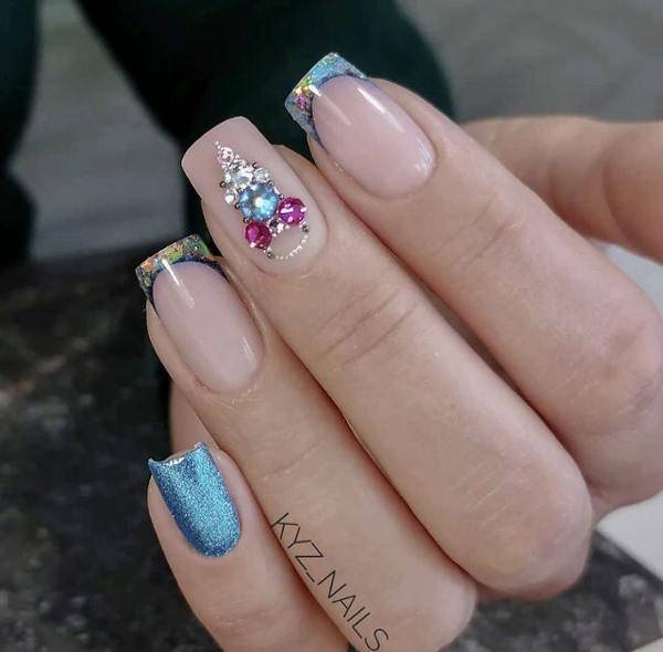 Добавьте в свой маникюр больше игры света при помощи красивейших кристаллов. Уже доказано, что лучи, преломляющиеся на множественных гранях, ассоциируются с роскошью и праздником в сознании человека. Все любят драгоценные камни и стразы хорошего качества. Разноцветные кристаллы и стразы сделают узор на ногтях праздничным и оригинальным.