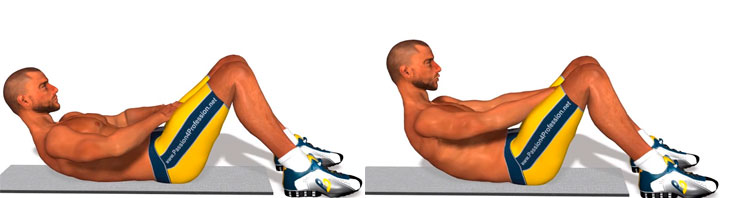 В этом положении следует поднимать и опускать верхнюю часть торса, важно, чтобы нижняя часть при этом не отрывалась от пола. Ноги должны быть согнуты в коленях и хорошо зафиксированы