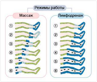 Компрессионный массаж отличается широким охватом: одновременно удается прорабатывать до 8 участков тела. Нужно отметить, что аппараты для прессотерапии очень ителлектуальны. Во многих из них уже встроены сложные программы, способные автоматически побороться с отеками, лимфостазом, менструальными болями, проявлениями менопаузы и другими проблемами.
