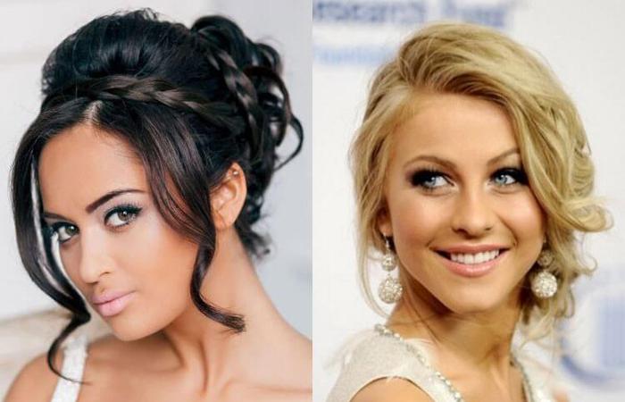 Тонкие волосы лучше убрать в пучок, украсив возвышение локонов. Вьющиеся пряди допустимо оставить распущенными, но натуральные кудри придется дополнительно упорядочить. В каждом случае удачным станет дополнение прически косой.