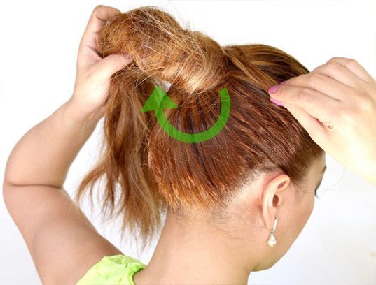 - Чтобы пучок получился большим и растрепанным, потяните его в разные стороны.