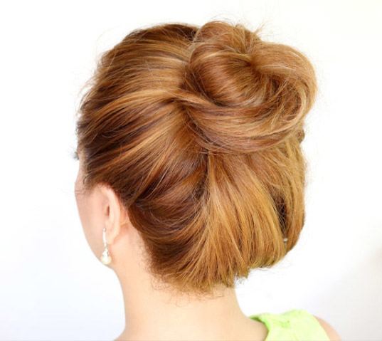 - Совет 10. Женщины маленького роста могут смело создавать эту укладку на макушке. Главное, чтобы она не была чересчур большой. Очень объемная прическа утяжелит верхнюю часть и сделает образ грубым.