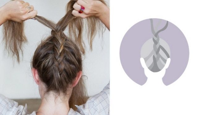 - Закрутите этот хвост вокруг своей оси. Если волос очень много, разделите их пополам и переплетите обе части между собой.