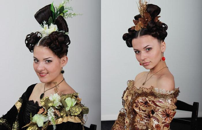 Прическа требовала большой длины, густоты собственной шевелюры. Тот, кто не мог похвастаться шикарными природными данными использовал накладные косы и пряди.