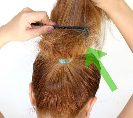 - С помощью тонкой расчески возьмите толстую прядь на макушке и хорошенько начешите.