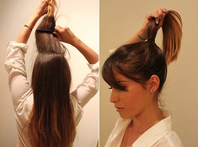 Даже если волосы не слишком чистые, то это и не важно – хвост и пучок все скроют