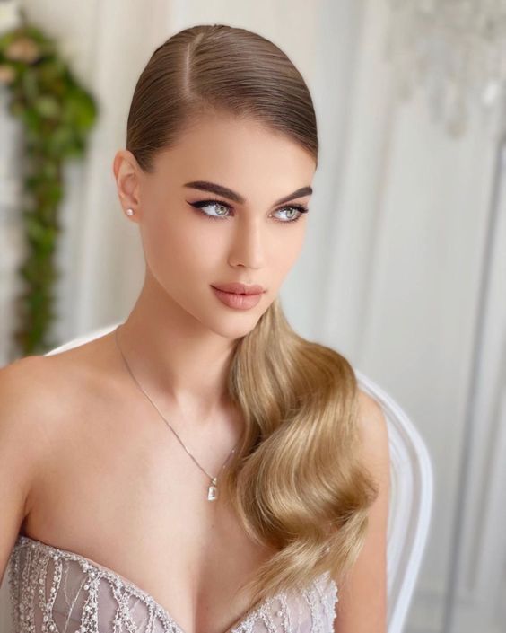 Этот способ укладки подходит для создания элегантной вечерней прически: сделайте низкий боковой хвост, накрутите несколько прядей, сбрызнете лаком – и прическа готова.