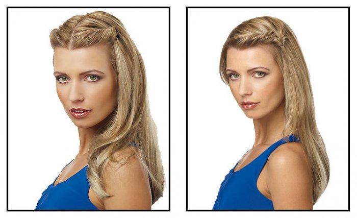Кроме того, ее можно выполнить с накладными пасмами. В таком случае дополнительные локоны добавляются таким образом, чтобы их крепежная система полностью перекрывалась волосами и не была заметной.