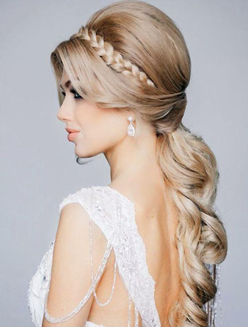 Прическа, похожая на предыдущую, но коса плетется из прядей хвоста. Здесь нет ограничений – это может быть и классическая коса, и «рыбий хвост», и «колосок». Особенно эффектно косы выглядят на длинных волосах.