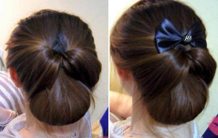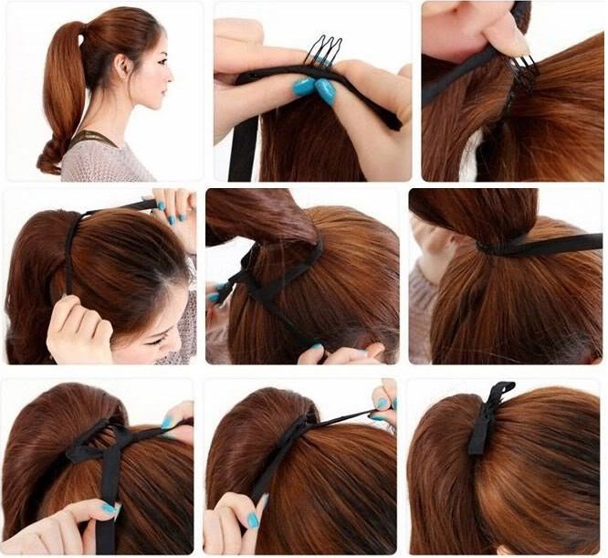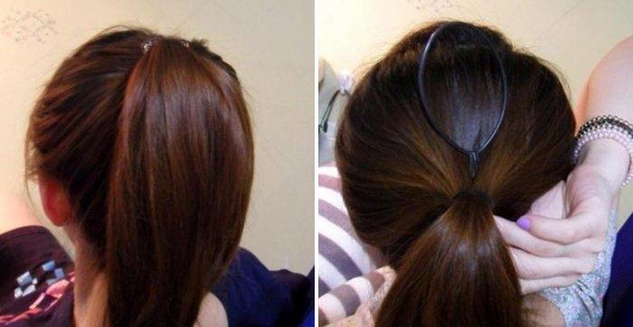 Этот способ подойдет девушкам с редкой шевелюрой. Главное, чтобы шиньон идеально сочетался с исходным цветом волос.