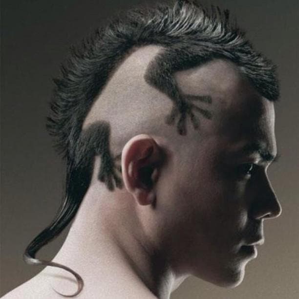 - Классический — тот самый «бунтарский» вариант, отличающийся чисто выбритыми висками и шириной средней полосы от двух до нескольких десятков сантиметров. Нередко сопровождается мелированием и яркими цветными акцентами «гребня». А также часто «украшается» различными видами рисунков, выбриваемыми на височной части. Укладка осуществляется сильнодействующими муссами или «цементирующими» гелями. Этот тип причёски подходит больше противоречивым подросткам и молодым музыкантам, чем взрослым деловым мужчинам.