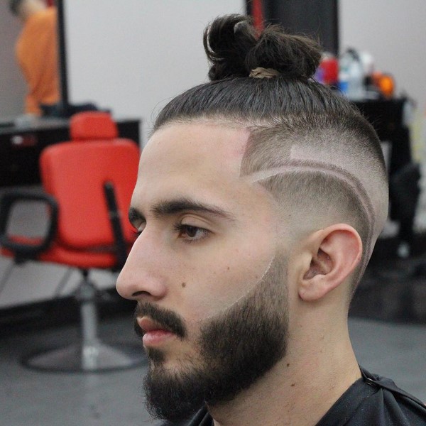 В ирокезе необычно и привлекательно смотрится рисунок на голове. Образ мужчины становится более экстравагантным, смелым и современным. Такой вариант подходит для активных и смелых мужчин. Узоры делают как с одной стороны на висках, так и с двух. И не всегда они симметричны. Их выбривают машинкой.