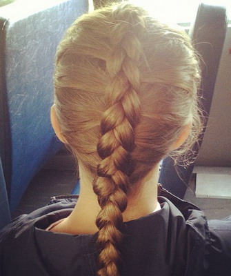 При плетении по всей массе волос выполняется «подплет»: слева прядь накладывается на крайнюю, справа подкладывается под прядь.