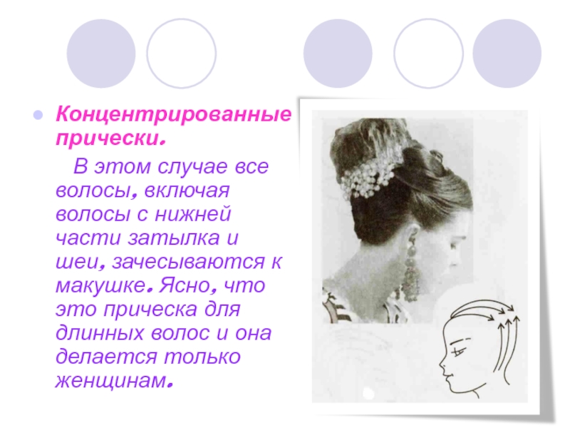 Слайд 5Концентрированные прически. В этом случае все волосы,