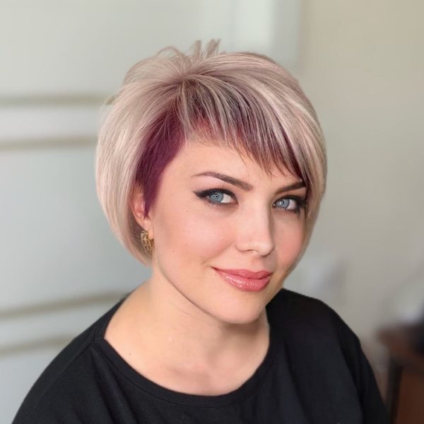 С круглым лицом прекрасно сочетаются удлиненные стрижки. Но обладательницам тонких волос от удлиненной стрижки придется отказаться. Для тонких волос специалисты рекомендуют объемную короткую стрижку. Для круглого лица объем создается наверху, что зрительно удлиняет голову. Виски же стригутся коротко, а удлиненные пряди с боков прикрывают лицо. Некоторым круглолицым красавицам подходит асимметричная короткая стрижка, так как она открывает лоб и прикрывает щеки, а также увеличивает объем прически именно там, где это нужно. Читайте ещё: Как выбрать прическу на свадьбу невесте.
