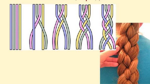 - Крайняя левая прядь накладывается на вторую и под третью.
