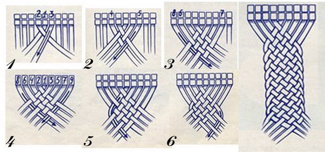 - Из пяти, семи, девяти и более прядей (нечетное количество прядей).