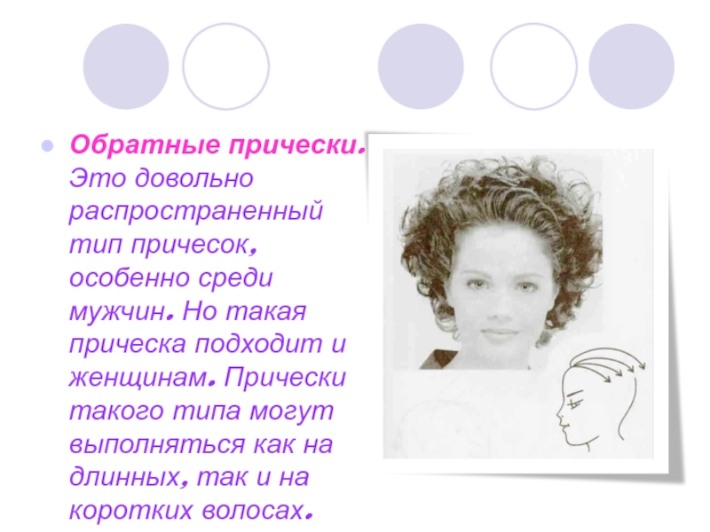 обратные. Представляют собой волосы, зачесанные от лба к затылку;