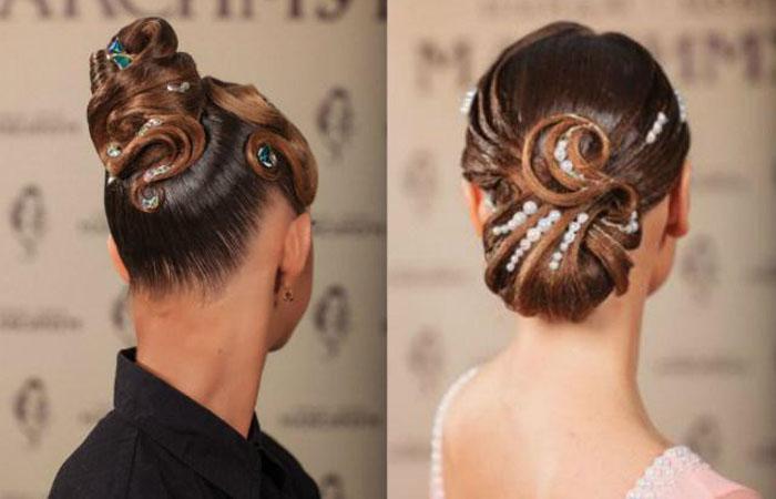 Бальные прически для выпускного вечера отличаются от повседневных только большей мягкостью и надежностью. Пряди нужно тщательно разгладить, чтобы они не попадали в глаза во время выступления. Сделать пучок — не проблема, добиться послушности прически гораздо сложнее. Особенно это актуально для девушек, так как она всегда лезет в разные стороны. Вышеперечисленные варианты подходят для разных танцев: хип-хоп, латино, ча-ча-ча.