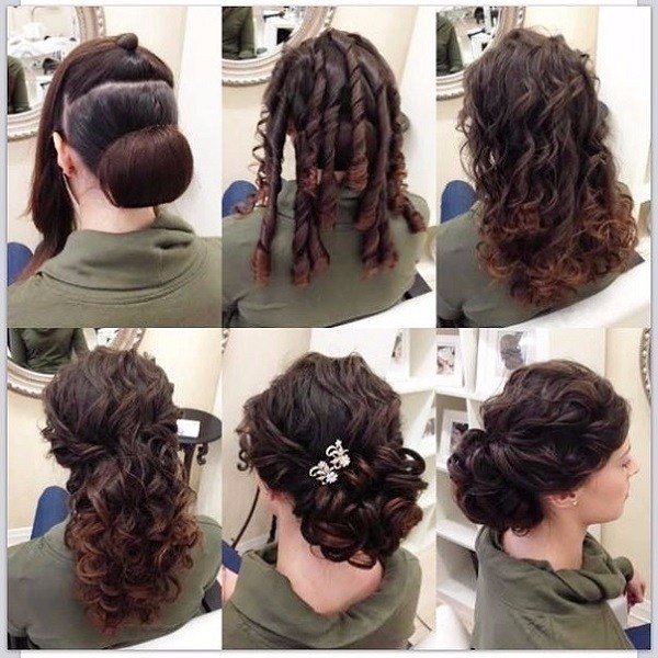- закрепить булавками. Можно слегка расчесать всю массу волос;