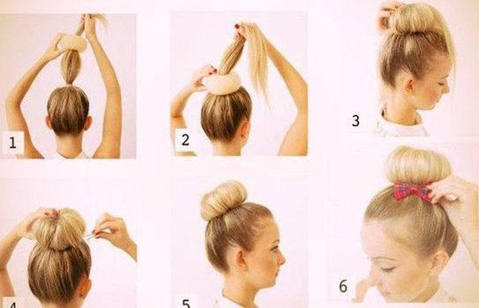 - Собрать пучок на голове можно самостоятельно. Чтобы он получался элегантным и красивым достаточно немного времени потренироваться, посмотреть видеоролики. При желании каждая женщина может создавать его своими руками с применением кольца в различных вариациях.