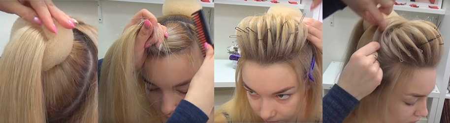 - закрепить булавками. Можно слегка расчесать всю массу волос;